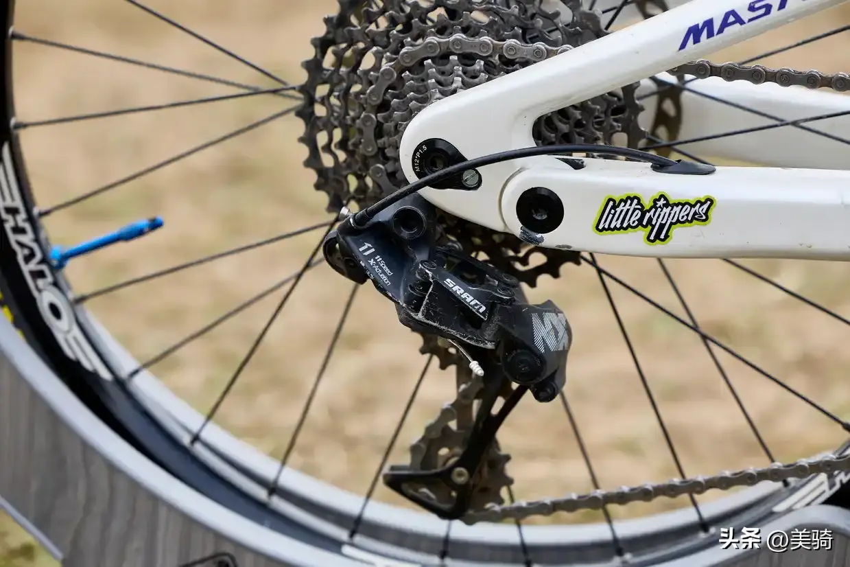 SRAM传动系统(包括NX后拨和SX曲柄组)用于换档,Shimano液压碟刹则负责刹车。轮胎前部是Maxxis DHF,后部为DHR II。后部避震则是由X-fusion 02 Pro后胆负责,有120毫米的后行程,而前部则配备120毫米的Manitou前叉。