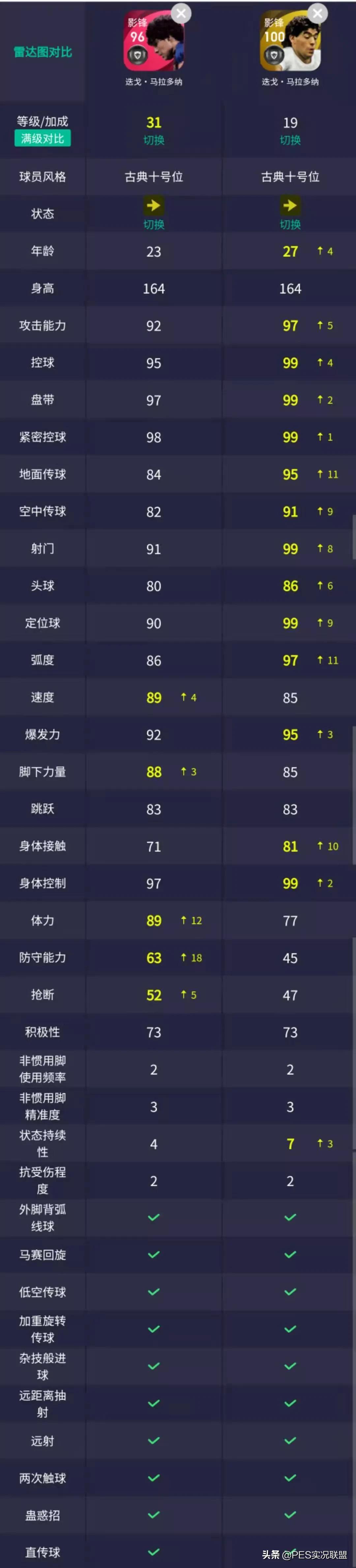 后者在传奇状态加强前,受制于模型和风格的短板,一直属于"二线传奇"。状态加强后,其速度和体力缺陷均得到一定程度的弥补。加之原本就是顶级的盘控、传球,以及媲美中锋的射门精准度,如今的实力也不容小觑。