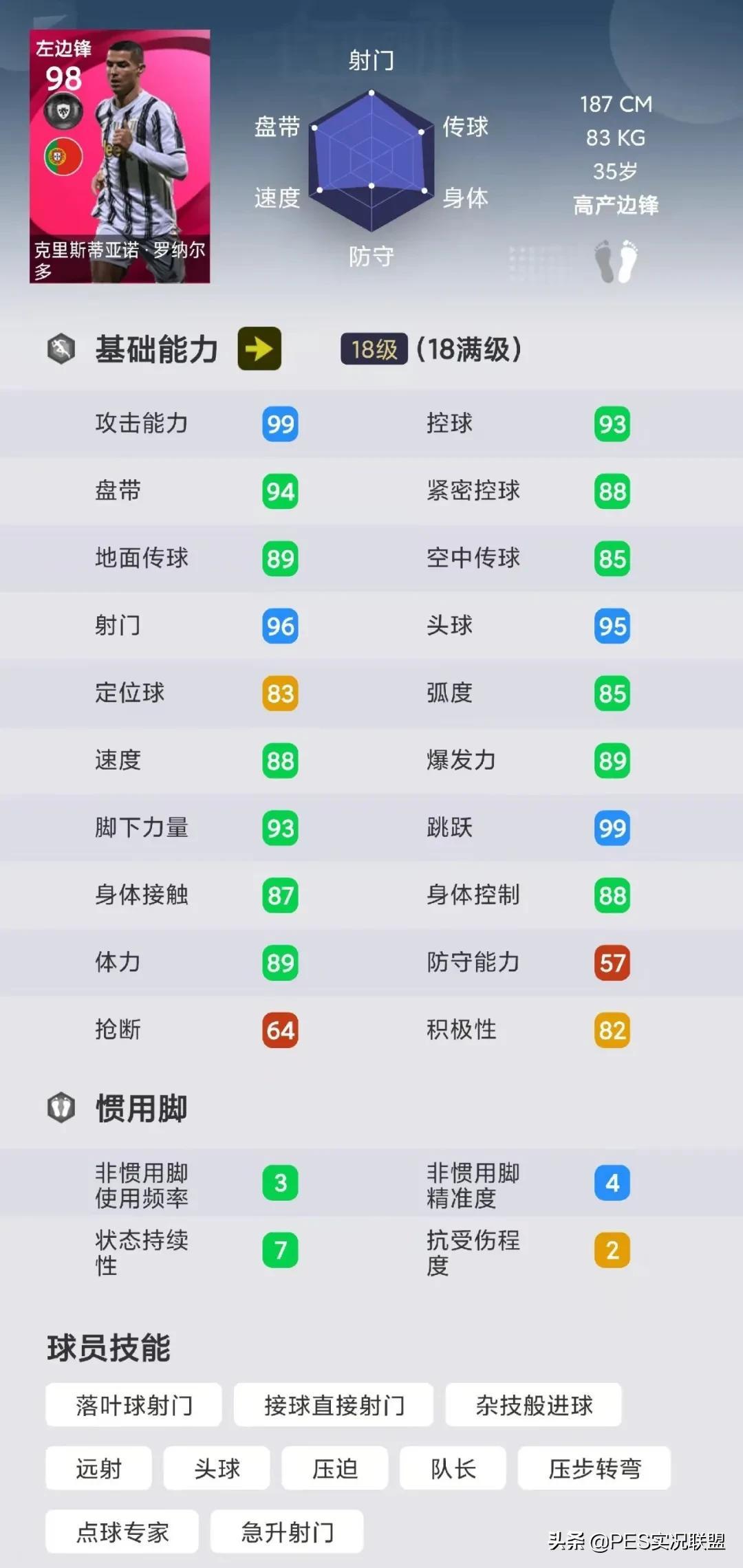 赠送说明:时刻C罗是科乐美直营平台庆祝移动版上线4周年推出的特别活动,当时国际服玩家只要在规定时间之前登陆游戏即可免费获得。