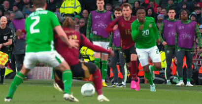 北京时间3月24日友谊赛,爱尔兰主场对阵比利时。上半场第28分钟,奥谢造点,埃文-弗格森主罚点球被泽尔斯神勇化解。下半场,奥蓬达、默尼耶的射门均被凯莱赫化解。最终比分爱尔兰0- 0比利时。