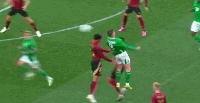 第11分钟,特罗萨德传中,蒂勒曼斯头球偏出