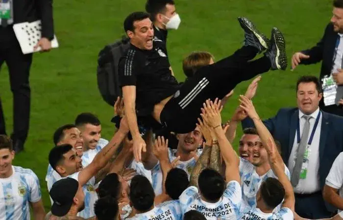 佩泽拉/罗梅罗—德保罗—劳塔罗,再加上即将加盟佛罗伦萨的N·冈萨雷斯,斯卡洛尼的阿根廷有一条意大利化中轴线,攻防两端与以往有很大不同。立足稳固防守,提升反击效率后,梅西身后有整条中场提供保障,这是阿根廷解放梅西的关键。阿根廷媒体认为,蓝白军团最终得以夺冠是两只雄狮的相互成就(梅西和斯卡洛尼同名,莱昂内尔意为“狮子”),阿根廷教练潜心三年,为梅西打造的团队,完成了蓝白军团28年的突破。