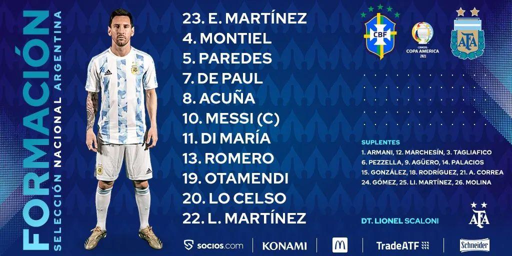 斯卡洛尼以442阵型应对巴西的433,有状态上佳的门将马丁内斯坐镇门前,老将奥塔门迪统领防线,德保罗、帕雷德斯和洛塞尔索组成的中场形成了禁区前的第二道防线,切断了巴西队中场对锋线三叉戟的弹药供应,是此役阿根廷能取胜的关键。当然,迪马利亚是关键人物:2008年他的进球帮助梅西拿到奥运会冠军,13年后又是他进球帮助梅西完成了在成年国家队夺冠的梦想。
