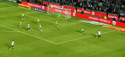 比赛第24分钟,迪马利亚发动攻势,梅西在禁区外远射,可惜射门打到防守球员身上。