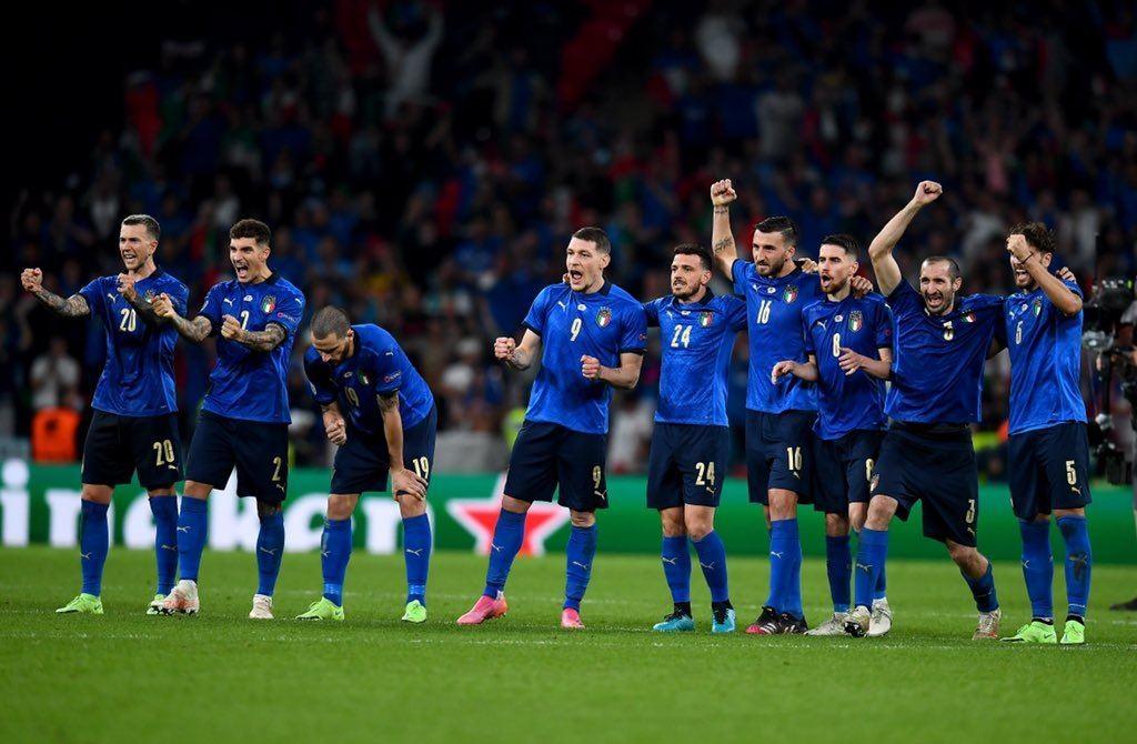 欧洲杯曾有一个点球大战运气值的定律,即单届比赛踢两场点球大战,一定是先赢后输,无法连胜,1996年的法国与英格兰、2016年的波兰、2021年的瑞士与西班牙都是如此,2021年的意大利是第一支单届连赢两场点球大战的球队。