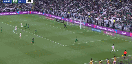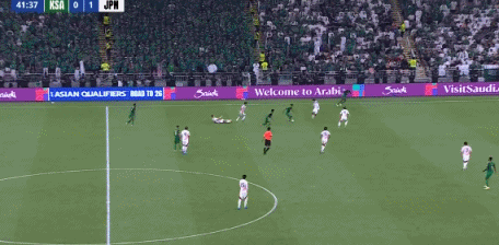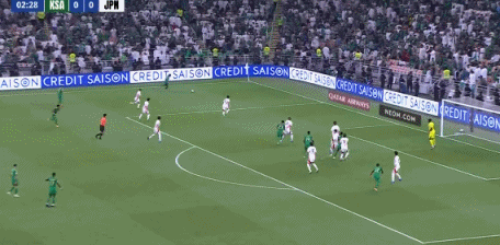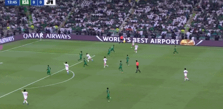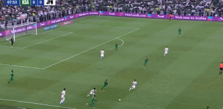 日本领先!第14分钟,堂安律右路斜长传,三笘薰不停球直接端向后点,守田英正再头球摆渡,镰田大地门前插上凌空垫射得手,沙特0-1日本!↓