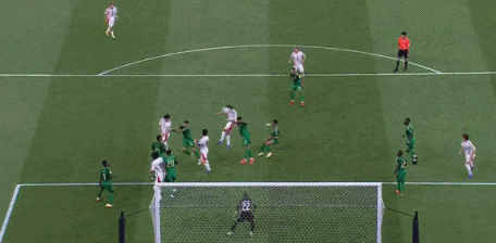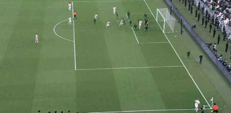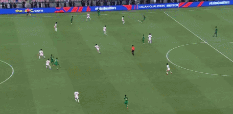 第90分钟,沙特右路传中,谢赫里禁区内头球冲顶高出横梁。↓