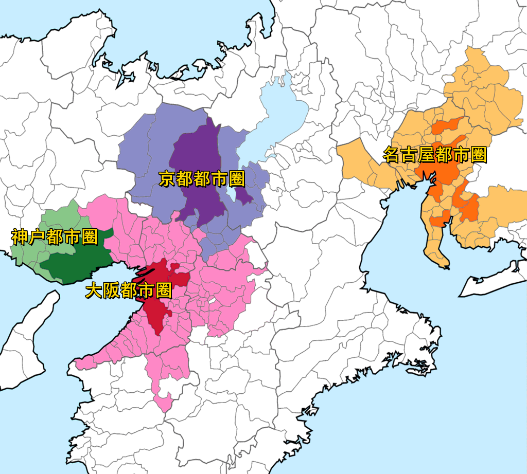 在东京都市圈的西南部还有两个大型的都市圈名古屋大都市圈和京阪神大都市圈(包括大阪都市圈、京都都市圈、神户都市圈),加上东京都市圈,以上就是日本三大都市圈。如果按照《首都圈整备法》、《中部圈开发整备法》以及《近畿圈整备法》这三部法律所规定的的这三大都市圈的地理范围,生活在这三大都市圈的人口规模那是相当的庞大。除了这三大都市圈外,日本其他地方的都市圈里也是生活着密集的人口,比如北海道的札幌都市圈,九州的福冈都市圈。