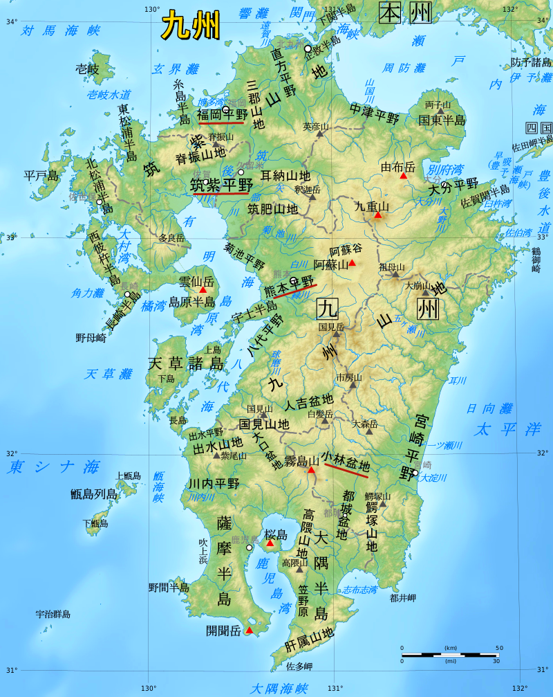 在日本的九州岛上:该岛最大的平原是筑紫平原(面积约为1200平方公里),其次是熊本平原(面积约为700多平方公里)、福冈平原等。四国岛上的平原主要有道后平原、赞岐平原、德岛平原、高知平原等。对于日本的四国岛而言,由于它面积比较小,这个岛上的几个平原面积也是比较小。此外,在日本列岛上,还有其他一些小型平原以及山谷盆地。