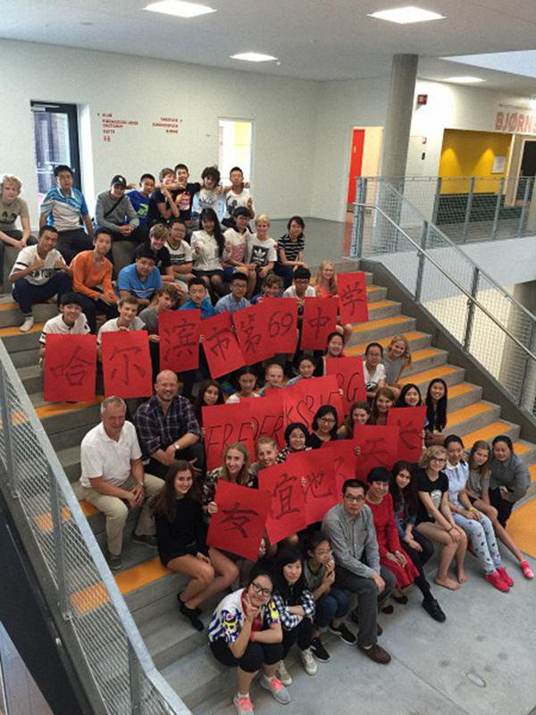 2016年,哈六十九中的学生参与丹麦的课堂。