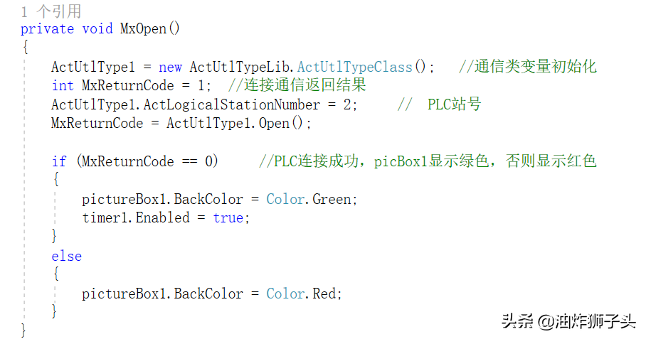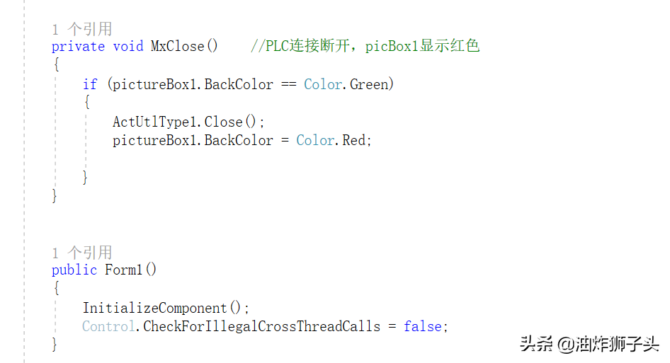 设置完之后就可以写代码了,先在窗体添加两个BUTTON按钮做通讯连接,通讯断开的按键,一个PictureBox做通讯是否成功的监控;