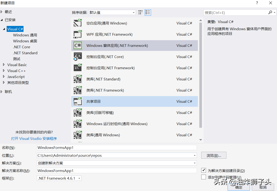 接下来打开VS软件(我的是VS2017),新建一个窗体应用程序;