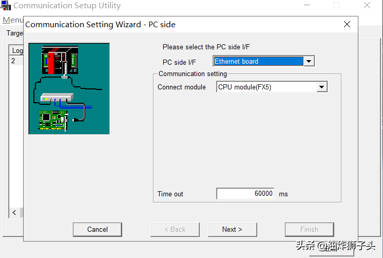 通过FX5U的内置以太网口连接工控机,设置好逻辑站号;