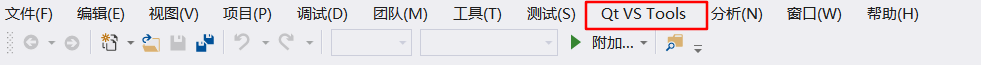 打开VS2017,如果vsaddiin安装正确的话,在2017的菜单栏中会多出一个菜单:Qt Vs Tools