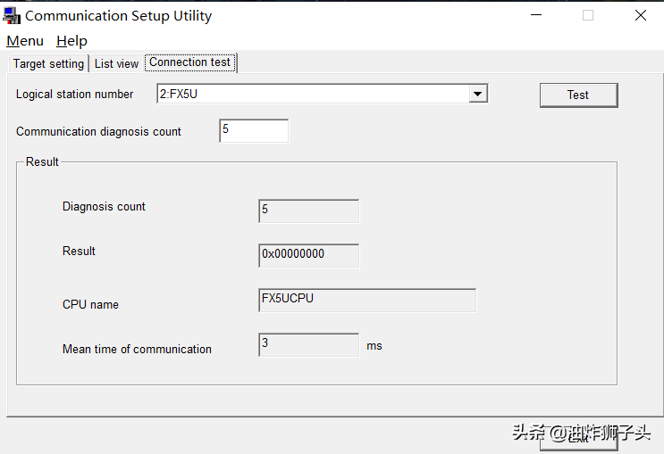 如上设置好参数后(PLC那边也有设置好相应参数),点击TEST按钮;