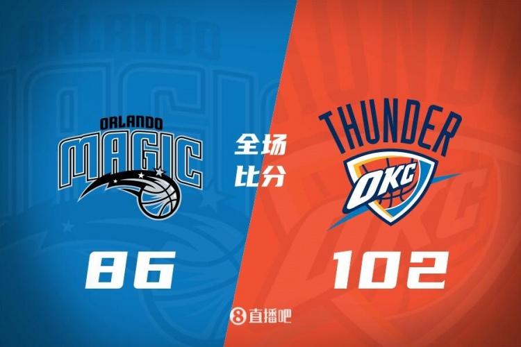 第四节雷霆亚历山大拿下6分,魔术萨格斯拿下10分,最终雷霆102-86战胜魔术