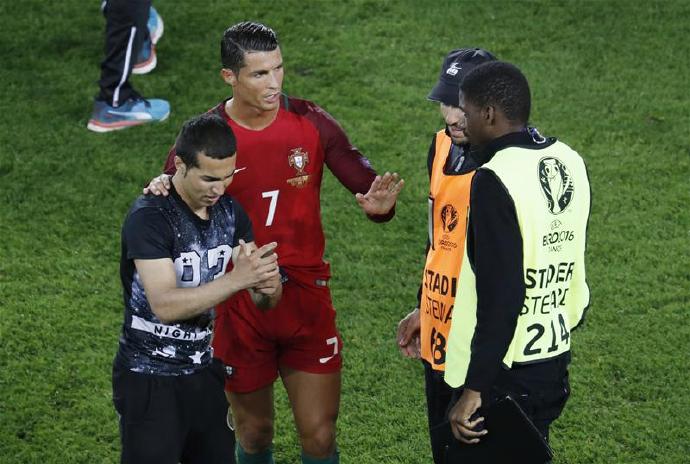 葡萄牙没能获胜,C罗虽然心情不好,但是赛后一位球迷冲进场内要求合影,C罗依旧欣然同意,并示意安保人员不要动粗,葡萄牙人用他的行动展示了自己的风度。