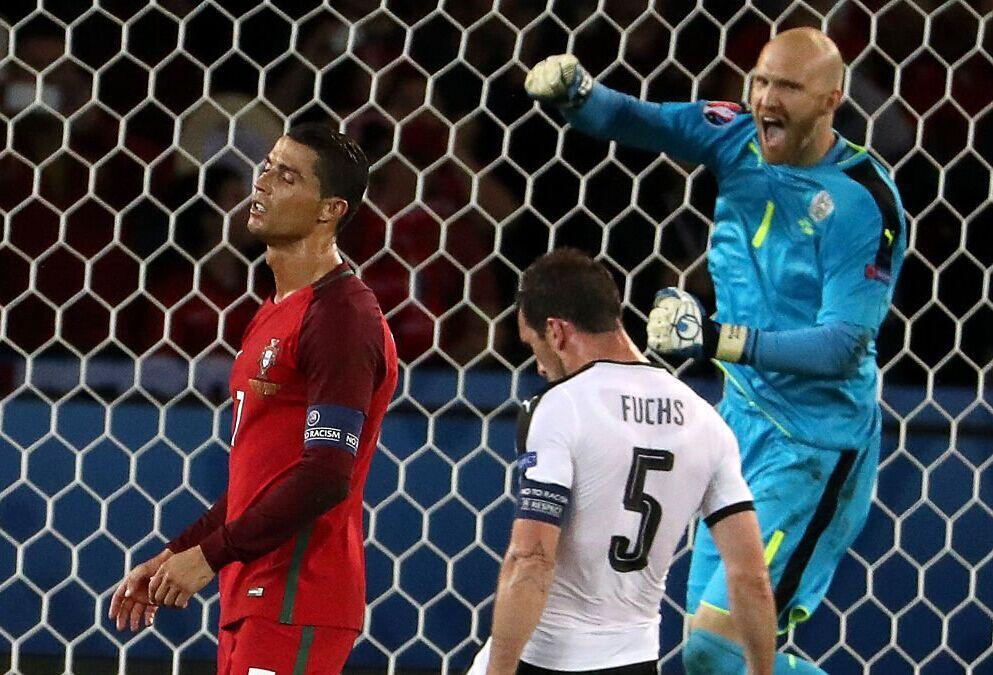 北京时间6月19日凌晨3点,2016年欧洲杯小组赛F组第二轮一场焦点战在巴黎的王子公园球场打响。上半场纳尼头球中柱,下半场C罗主罚点球击中立柱弹出,奥地利门将阿尔莫表现出色力保球门不失,葡萄牙0-0憾平奥地利收获两连平。