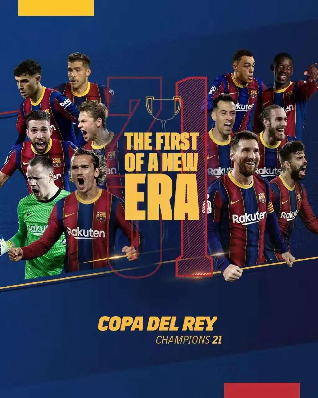 终场哨声响起,巴萨4-0完胜毕尔巴鄂竞技,夺得本赛季国王杯冠军!