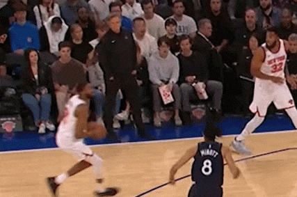 但实际上,以布伦森的比赛视角去看的话,重回五号位上的唐斯要对比的其实是无法挽回的哈滕斯泰因。 尼克斯原以为,布伦森和唐斯的挡拆配合会成为非常高效且稳定的主打套路,但就像上赛季的利拉德和字母哥一样,很多幻想中的可能性在防守人轻松的挤过掩护时就破灭了,就像人们突然发现字母哥的掩护质量不够高、挂不住人一样,唐斯的掩护质量其实也不怎么高,很多时候,布伦森与唐斯之间的挡拆配合根本就无法直接创造出得分的空间或者是更主动的进攻机会。