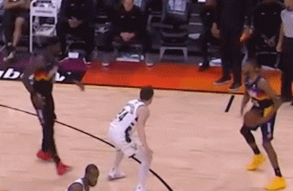 而在防守方面,向来以出色领防能力著称的他,本赛季却成了吃掩护的专业户,总是能被对手的掩护轻而易举的拖慢脚步,总是给对方的持球人留出非常多用来开启进攻的空间,这当然与唐斯所采取的蹲守策略脱不开关系,但唐斯的防守习惯很差是引进他的时候就已经获悉的事实,这也不是布里奇斯作为领防人给不到持球人足够压力的借口。