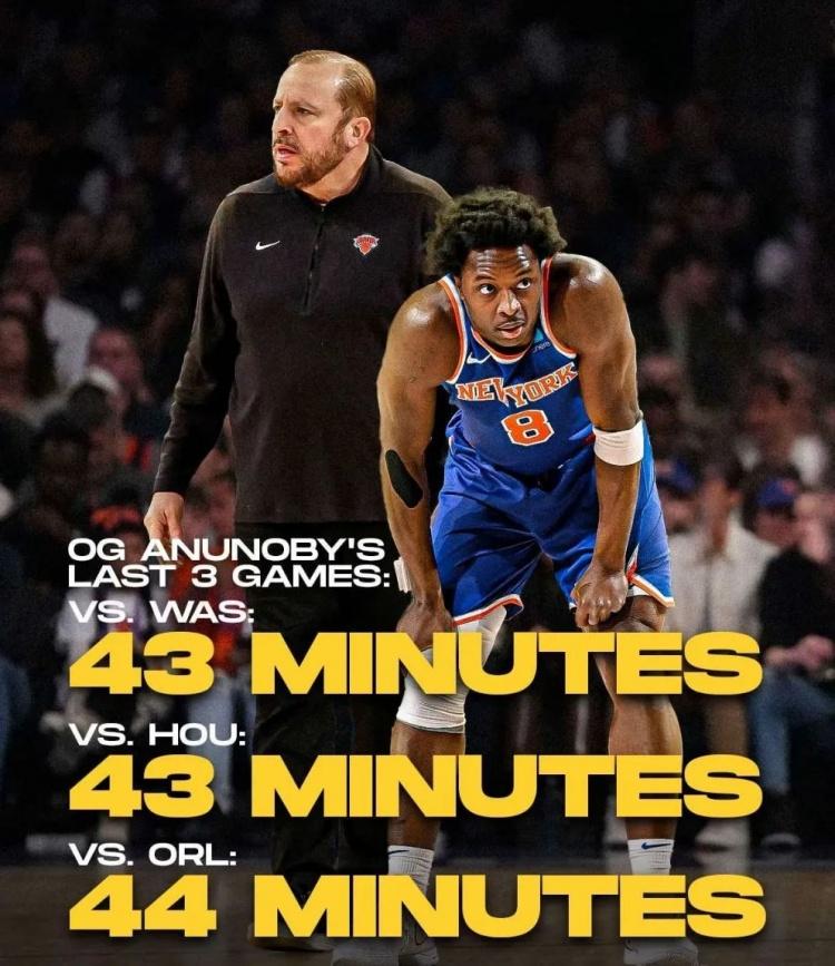 截止到目前为止,布里奇斯场均要出战37.8分钟,排在联盟第六;哈特36.7分钟,联盟第12;阿奴诺比36分钟,联盟第18......而当他们之中有人需要下场喘口气时,能被锡伯杜派上场的就只有麦克布莱德,除垃圾时间外,他们三个就只能有一个人在场边稍微喘口气,而且这间隙里,另外两位还要摇摆到不那么舒适的位置上去照顾更多的人......