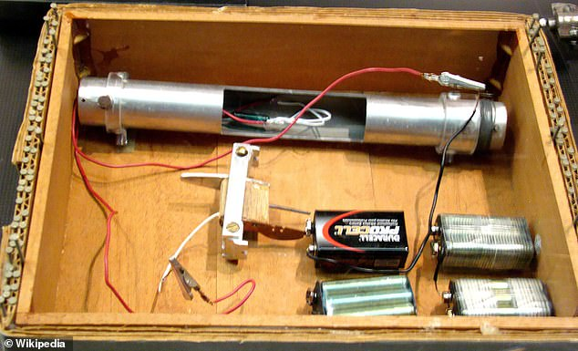 (卡钦斯基在美国各地邮寄爆炸物造成3人死亡,23人受伤。图为FBI展出的卡钦斯基一枚炸弹的复制品。)