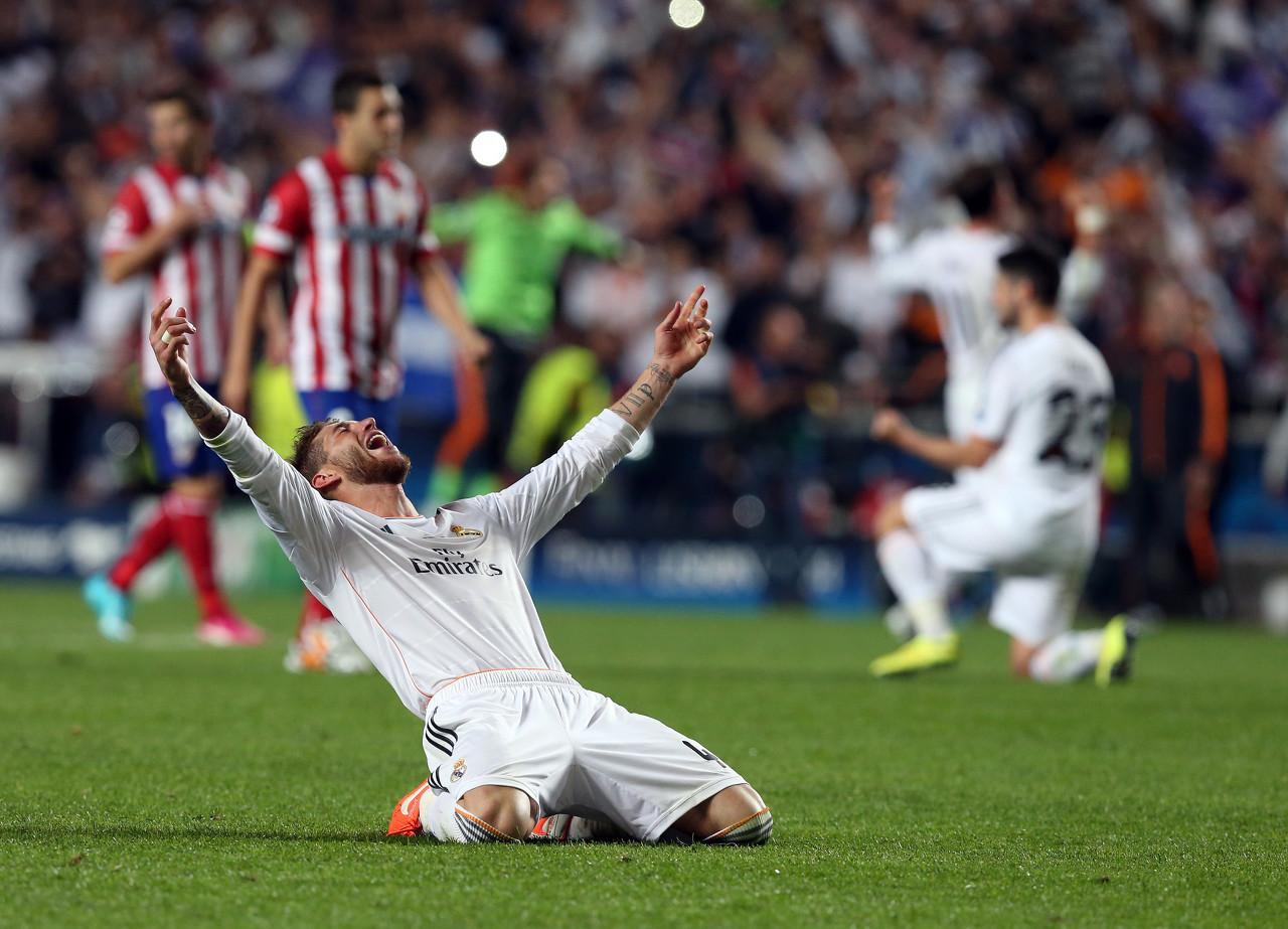 比赛常规时间第92分48秒,拉莫斯在读秒时刻接莫德里奇的角球,高高跃起狮子甩头,将球顶进球门,皇马绝平马竞,将比赛拖进加时赛↓