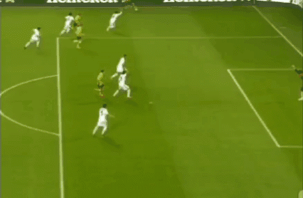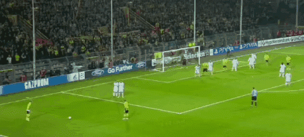 小组赛第一场较量,多特主场,第27分钟罗伊斯开出的角球十分精准的旋向球门差点破门。