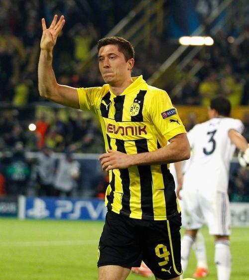 那场比赛之前,多特与皇马的2012—2013赛季欧冠小组赛第三轮比赛上,第36分钟莱万进球。