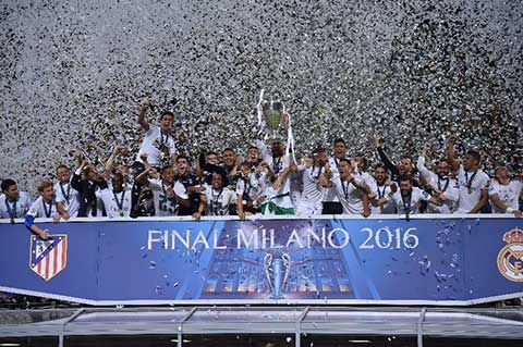 北京时间5月29日凌晨2点45分(欧洲中部时间28日晚20点45分),2015-16赛季欧冠决赛在米兰圣西罗球场展开争夺,皇马和马竞上演马德里德比大战。上半场第15分钟,克罗斯开出任意球,贝尔摆渡,拉莫斯门前扫射破门为皇马取得领先。第48分钟,格里兹曼射失点球。第79分钟,替补出场的卡拉斯科铲射破门1-1追平比分。90分钟双方1-1踢平,比赛进入加时。30分钟加时赛双方都没能进球,120分钟1-1的比分把比赛拖入点球大战。点球战皇马5罚全中,马竞胡安弗兰踢丢点球,皇马点球战5-3战胜马竞,总比分6-4战胜马竞夺冠!历史上第11次夺得欧冠!