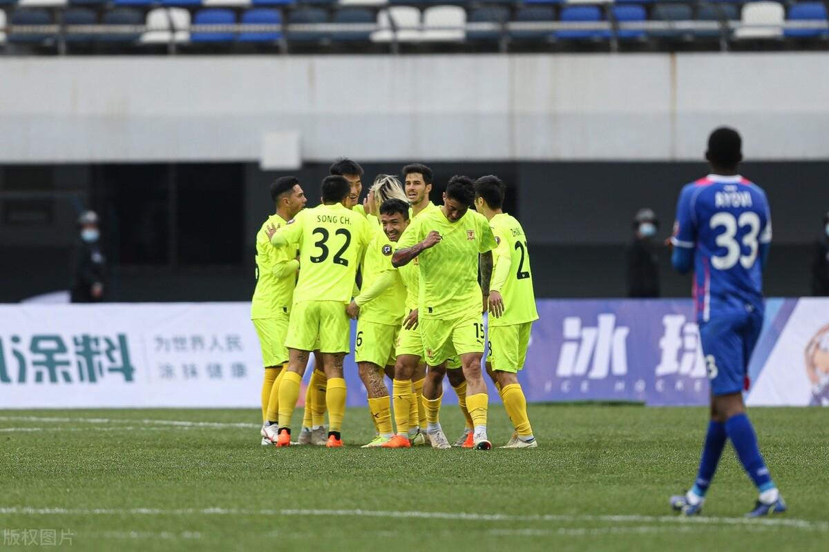第77分钟,前后场明显脱节的客队再丢一球,金承大抓住对方后卫传球失误机会将球搓向中路,艾合买江头球为主队锁定胜局。