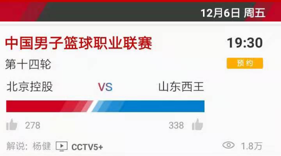 12月6日,CCTV5将直播山东鲁能、CCTV5+直播山东西王