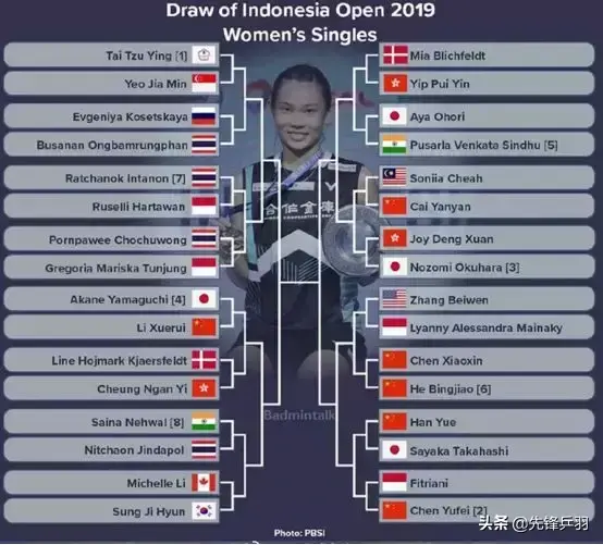 蔡炎炎vs谢抒芽,交手记录是0-0,排名是蔡炎炎16,谢抒芽33,正常发挥,蔡炎炎应该胜出; 陈晓欣vs何冰娇,最近一次交手是今年1月份的印尼大师赛,何冰娇2-0战胜陈晓欣,相信这次也是何冰娇胜出; 韩悦和高桥沙也加总比分打成1-1,2018年新加坡赛韩悦0-2输,2019亚洲团体赛韩悦2-1战胜高桥沙也加,每次比赛都打得难舍难分,如果韩悦胜出,第二轮将对阵陈雨菲。陈雨菲vs菲特里亚妮 ,交手记录陈雨菲4-2领先,但对手是东道主,印尼主场的优势,陈雨菲还是要小心一点。不出意外,陈雨菲和何冰娇将在第三轮相遇,争一个半决赛名额。