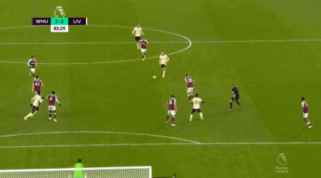 第39分钟,西汉姆联打出快速反击,后场开大脚找前锋,弗尔纳斯接球反越位形成单刀,他面对阿利森轻巧挑射,阿诺德两次在禁区线上解围。上半场结束,利物浦1-0领先铁锤帮。