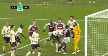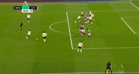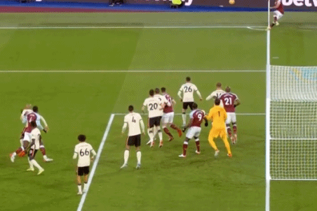 第4分钟,福纳尔斯开左侧角球直接飞进了球门,VAR确认奥邦纳没有犯规,官方算了阿利松的乌龙球,西汉姆联取得1-0领先。