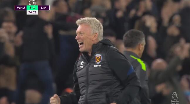 取得4连胜的西汉姆联上升至联赛第3,领先身后的曼联6分。