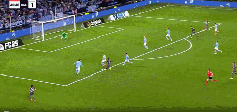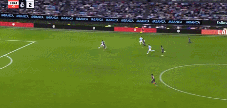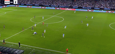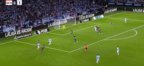 第66分钟,罗德里戈横传,莫德里奇得球送出直塞,禁区内维尼修斯获得单刀球机会将球送进球门,皇马2-1塞尔塔。↓