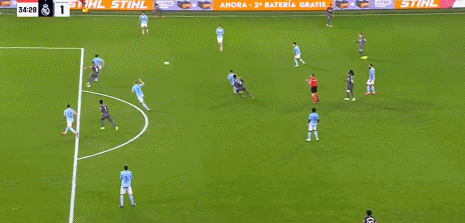 第22分钟,伊格莱西亚斯破门,但他已经处于明显越位位置,进球无效。↓