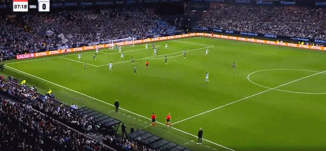 上半场伤停补时1分钟,半场结束,皇马暂1-0塞尔塔。