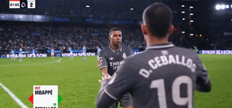 第81分钟,皇马换人,姆巴佩被塞瓦略斯换下