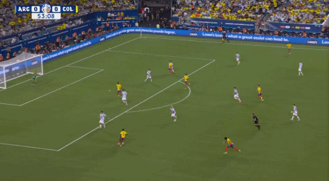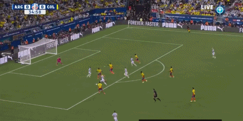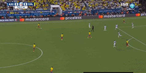 第32分钟,梅西中场带球被断,哥伦比亚反击被破坏