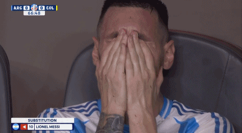 第68分钟,不甘,梅西受伤下场后摔球鞋+掩面哭泣