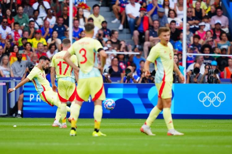 直播吧8月10日讯 北京时间8月10日0点,奥运男足金牌赛,法国对阵西班牙。上半场,特纳斯扑救失误,米洛特射门得分,费尔明连进两球反超比分,巴埃纳任意球直接破门。上半场比赛结束,法国1-3西班牙。