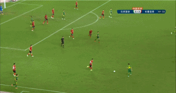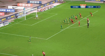 第53分钟,北京国安打破僵局。李磊头球摆渡,张玉宁前点头球未能顶到,巴坎布凌空抽射击中门框弹出,张玉宁头球被长春亚泰球员解围,但皮球已经完全越过了门线,北京国安1-0领先!