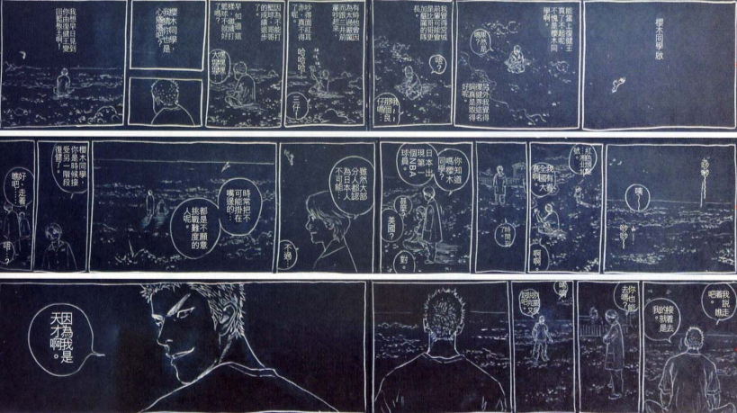 在与山王的最后一战中,樱木花道带伤比赛最终导致严重的伤病,全国大赛之后又发生了什么?井上雄彦有一次在一张黑板上给出了答案,这就是著名的《灌篮高手》续篇——(10日后)。