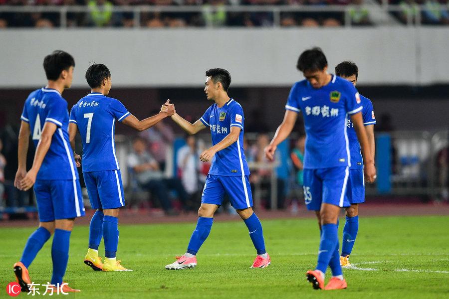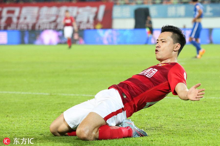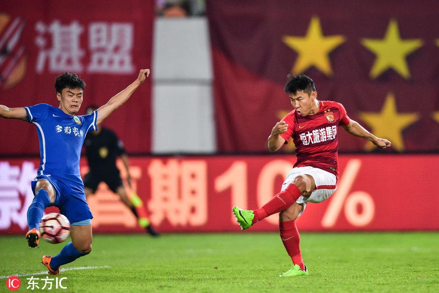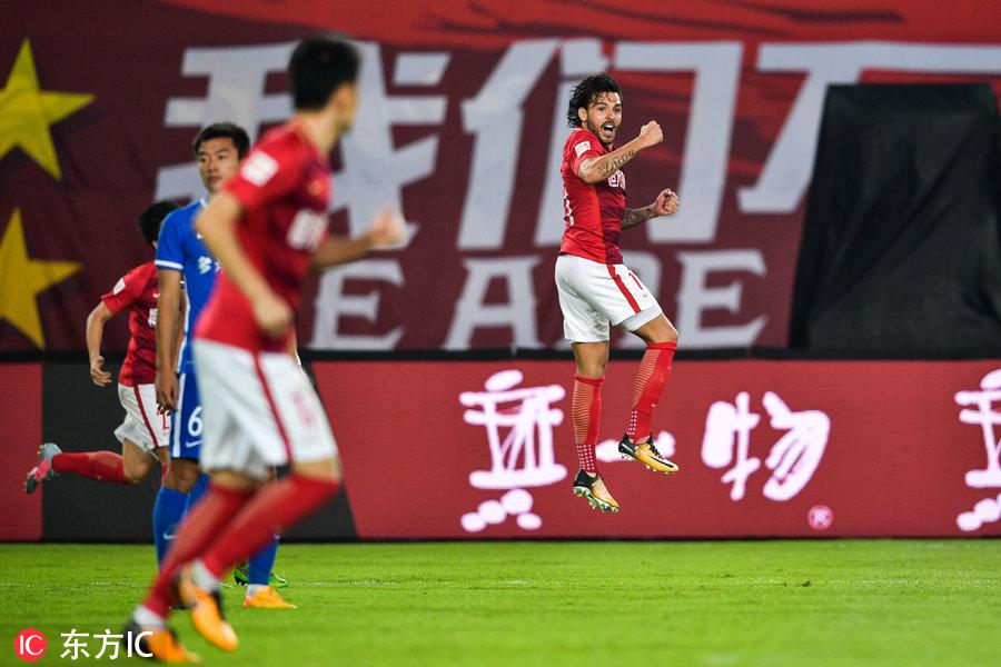 2017年10月22日,广州,2017中超联赛第28轮,广州恒大5:1贵州智诚。比赛第15分钟,郜林率先打进1球。(图片署名: 东方IC)