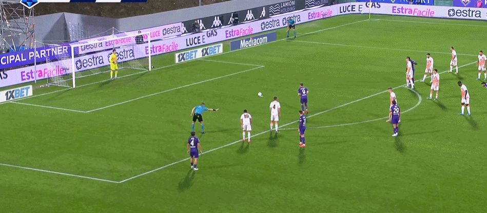 第41分钟,博韦左路横传,莫伊塞-基恩门前铲射破门!佛罗伦萨3-1