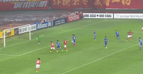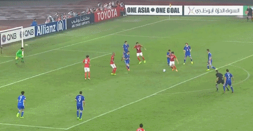 第38分钟(见上图 ),阿兰转身将球直塞给左路插上的高拉特。高拉特拿球后,前方的接应点只有郜林一人。此时,郜林的跑动路线应该瞄准左侧肋部的大片空当区域。只要高拉特的传球时机不出问题,郜林接球后不仅不会越位,还会获得单刀的机会。可惜郜林的跑动路线瞄准了远端,也许他更想完成头球攻门吧。