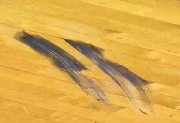 当然,把篮球扣瘪这自然还不是最恐怖的。众所周知,老詹的大腿肌肉十分发达,之前一张训练师给他放松肌肉的图片中,詹姆斯的大腿肌肉横着看过去简直粗如水桶,都快比训练师的腰粗了。而这么出色的下肢肌肉,其力量也是相当恐怖。当年一场热火对阵掘金的比赛中,詹姆斯在一次急停中直接留下了只有汽车刹车时才能留下的刹车印,也让不少球迷大吃一惊。